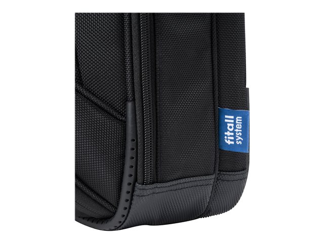 La séparation du système fit-all dans le compartiment ordinateur recouvre votre ordinateur, le protège et s'adapte automatiquement. La mousse légère en EVA perforée placée dans le compartiment verrouillable de l'ordinateur, protège parfaitement les angles de votre appareil, avec un énorme gain de poids. Tenue optimale pour votre ordinateur portable dans le compartiment, assurée par le revêtement anti-glisse. Protection idéale pour votre iPad ou tablette dans le compartiment formé en EVA avec doublure extra douce en nylex. Espace de rangement généreux pour une imprimante, un projecteur et des documents dans le compartiment extensible et le compartiment à fermeture éclair. La poche frontale avec porte-clé et compartiments de rangement organise vos ustensiles personnels et offre de la place pour d'autres accessoires mobiles. Le rembourrage ergonomique du dossier, les sangles réglables en longueur, la poignée confortable et la lanière de fixation assurent un confort de port optimal. Compartiment à fermeture éclair dissimulé pour papiers d'identité. Fond de la sacoche en matière étanche.
