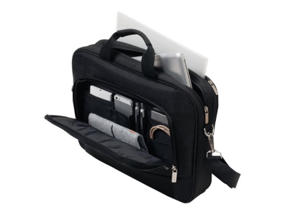 Votre ordinateur est protégé de façon optimale par le rembourrage en mousse haute densité. De plus, la sacoche offre de la place pour vos documents. Vous pouvez ranger vos accessoires mobiles dans la poche avant. Toutes vos affaires importantes sont ainsi à portée de main en permanence. La bandoulière est amovible et de longueur réglable. Grâce à sa poignée rembourrée en néoprène, la sacoche tient bien en main et se fixe au trolley un clin d'œil grâce à sa sangle intégrée: un accessoire intelligent dans la catégorie poids plume!