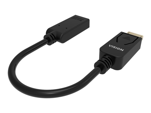 Muni d'une prise HDMI de taille standard, ce convertisseur se branche sur une prise DisplayPort. Le circuit actif permet de brancher des ordinateurs munis ou non de sorties DisplayPort " double mode " (DP++) sur des dispositifs d'affichage à entrées HDMI.
