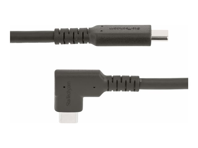 Connectez une source USB 10 Gbps et des périphériques, à l'aide de ce câble USB Type-C robuste à angle droit. Positionnez la connexion USB-C à angle droit le long de l'appareil pour réduire l'encombrement des câbles et éviter les tensions prolongées dues à la flexion.
