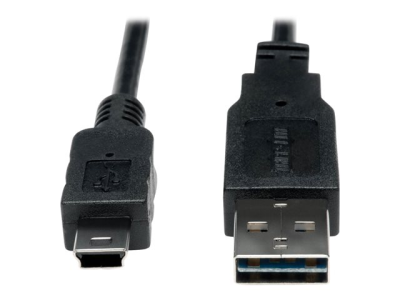 Tripp Lite 3ft USB 2.0 High Speed Converter Adapter Cable Reversible A to 5Pin Mini B M/M 3' - Câble USB - mini USB type B (M) pour USB (M) - USB 2.0 - 91 cm - connecteur à 90°, moulé - noir