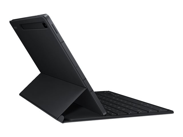 Mettez en valeur la forme de votre Galaxy Tab avec le Book Cover Keyboard Slim, fin et léger. Il s'installe en un clin d'œil. Il vous suffit de le placer autour de votre tablette comme une couverture de livre, et des aimants le maintiendront en place. Il y a même un compartiment pour accueillir votre S Pen.