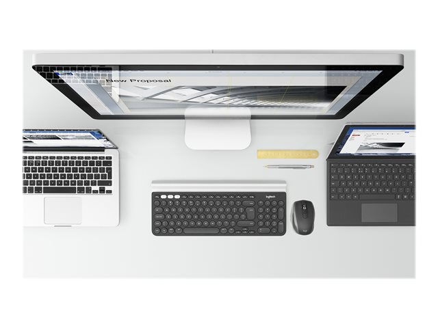 CaractéristiquesMolette de défilement, Logitech Darkfield Laser Tracking, indicateur de niveau de batterie, récepteur Logitech Unifying, technologie Easy-Switch, Logitech Flow, défilement hyper rapide