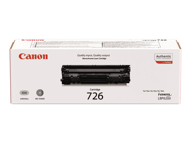 Obtenez de superbes tirages monochromes sans traces grâce à la cartouche tout-en-un 726. Parfaitement compatible avec votre périphérique Canon, elle vous permet d'imprimer de nombreuses pages.