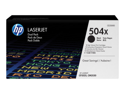 HP 504X - Pack de 2 - à rendement élevé - noir - original - LaserJet - cartouche de toner (CE250XD) - pour Color LaserJet CM3530, CM3530fs, CP3525, CP3525dn, CP3525n, CP3525x, CP3527, CP3529