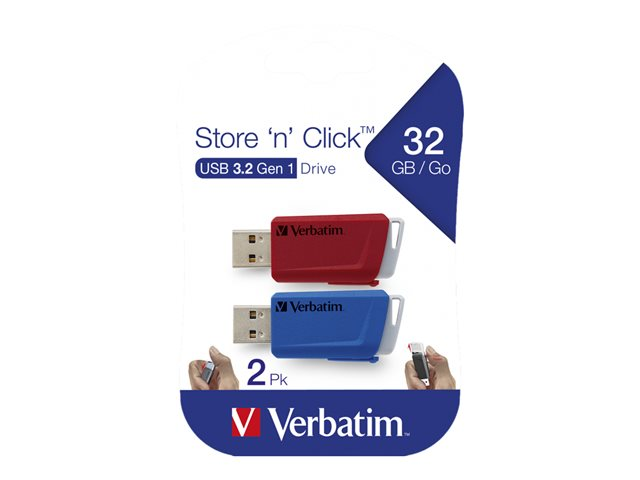 Verbatim Store 'n' Click - Clé USB - 32 Go - USB 3.2 Gen 1 - bleu, rouge (pack de 2) 49308