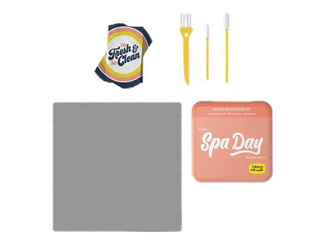 Sodas collants, doigts gras, poussière, saleté et crasse. Occupez-vous de votre appareil comme il se doit, et redécouvrez ce sentiment si agréable que l'on éprouve quand on acquiert un nouveau téléphone. Le Mobile Device Care Kit d'OtterBox dispose de tout le nécessaire pour refaire une beauté à votre téléphone. Pratique, ce kit se glisse dans vos poches ou vos sacs afin que vous puissiez redonner de l'éclat à votre téléphone à tout moment.