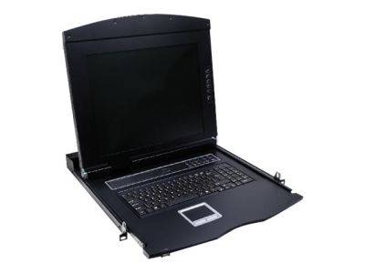 Console rackable 1U avec un écran LCD 17'' et un clavier équipé d'un touchpad. Jumelée au module KVM 9A2/CAS-8UP vous pourrez contrôler jusqu'à 8 serveurs.