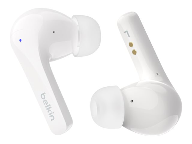 Belkin SoundForm Motion - Écouteurs sans fil avec micro - intra-auriculaire - Bluetooth - Suppresseur de bruit actif - isolation acoustique - blanc