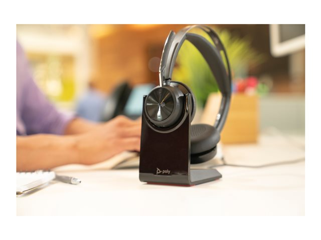 Poly Voyager Focus 2 - Micro-casque - sur-oreille - Bluetooth - sans fil, filaire - Suppresseur de bruit actif - USB-C via un adaptateur Bluetooth - noir - Certifié pour Microsoft Teams