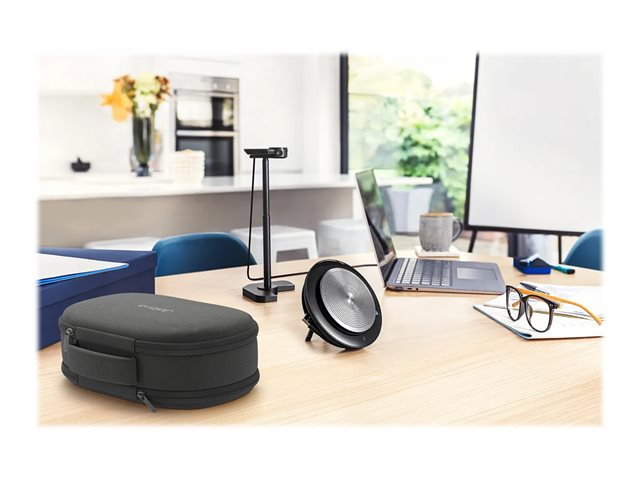 L'offre Jabra Meet Anywhere+ contient tout ce dont vous avez besoin pour transformer n'importe quel espace en lieu de réunion. Une pochette de voyage compacte permet de ranger le Jabra PanaCast intelligent et le Speak 750 haut de gamme dans un seul endroit facile à transporter, pour que vous puissiez profiter d'une communication simple et prête à l'emploi chaque fois que vous en avez besoin.
