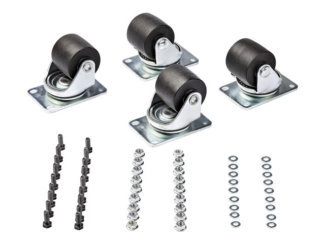StarTech.com Heavy Duty Casters for Server Racks/Cabinets, Set of 4 Universal M6 2-inch Swivel Caster Kit, 45x75mm Pattern, Replacement Caster Wheels for 4 Post Racks, Steel/Plastic - 4-Pack Rolling Caster Kit (RKCASTER2) - Kit de roulettes pour rack - noir, argent