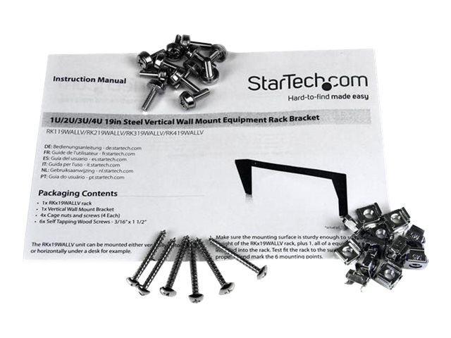 StarTech.com Support Mural Vertical en Acier pour Rack 3U - Acier - 48 cm - Support de montage - montable sur mur - noir - 3U - 19" RK319WALLV