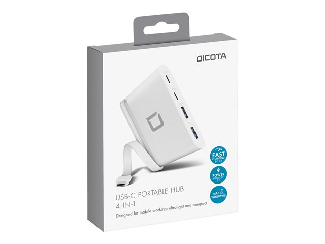 DICOTA USB-C Portable Hub 4-in-1 - Concentrateur (hub) - 2 x USB-C + 2 x SuperSpeed USB - de bureau