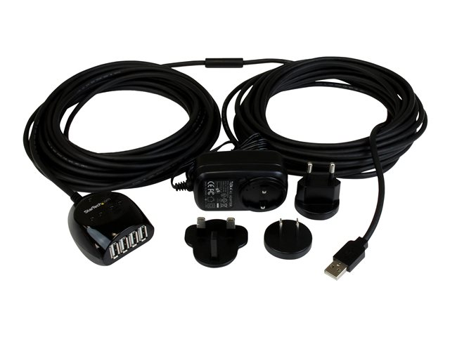 StarTech.com Câble d'extension / Rallonge USB 2.0 actif de 15m avec hub USB à 4 ports - Cordon USB A (Mâle) vers 4x USB A (Femelle) - Noir - Concentrateur (hub) - 4 x USB 2.0 - de bureau - pour P/N: SVA5H2NEUA USB2EXT4P15M