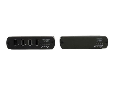 L'extendeur USB 4 ports USB2004EXT2 vous permet de prolonger jusqu'à 100 m les connexions des appareils USB 2.0 sur câble Ethernet Cat5 ou supérieur. Un adaptateur d'alimentation inclus à l'extrémité distante fournit jusqu'à 500 mA par port, vous permettant ainsi d'accéder à et d'alimenter quatre appareils USB 2.0 distants du système informatique hôte.