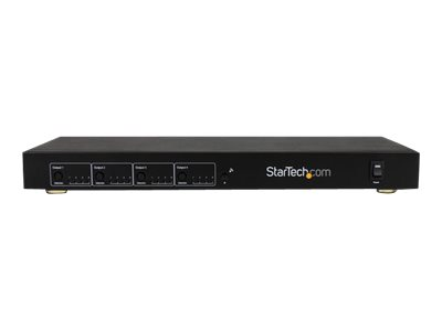 Le commutateur de matrice HDMI et extendeur de Cat5 ST424HDBT propose une solution complète d'affichage numérique qui vous permet de prolonger jusqu'à 70,1 mètres quatre sources audio/vidéo HDMI distinctes vers quatre affichages distants par le biais de récepteurs STHDBTRX (vendus séparément). La commutation de matrice permet à chacun des affichages distants d'envoyer des signaux vidéo et de passer d'une source à l'autre.