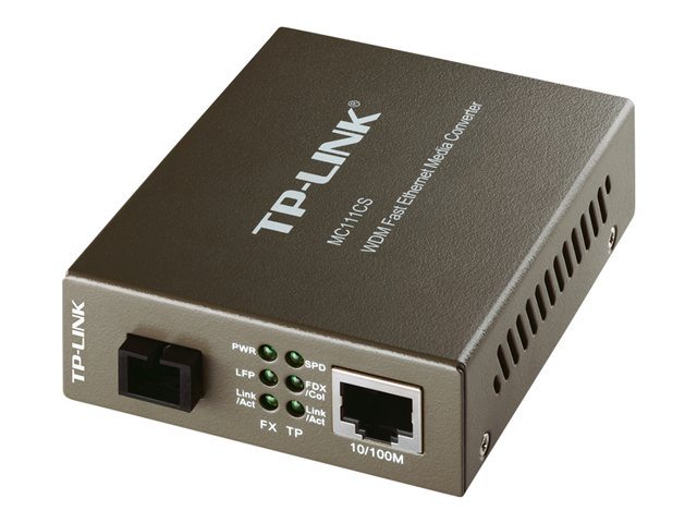 TP-Link MC111CS - Convertisseur de média à fibre optique - 100Mb LAN - 10Base-T, 100Base-FX, 100Base-TX - RJ-45 / mode unique SC - jusqu'à 20 km - 1 550 (émission)/1 310 (réception) nm